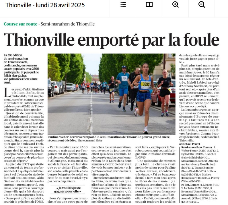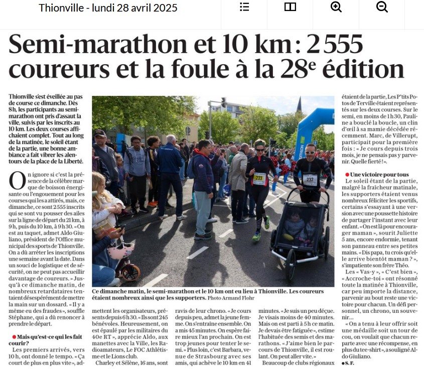 Plus de 2500 coureurs au 10 km et au Semi-Marathon de Thionville, et une foule enthousiaste !!! Génial !!!